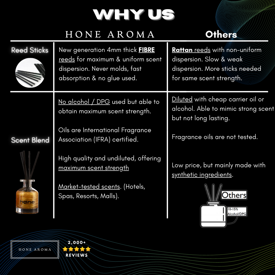 "Being able to schedule the diffuser's activity, 1 bottle lasts me 5 months! I use it only when I need to, saving me money on reed diffusers." - Mabel